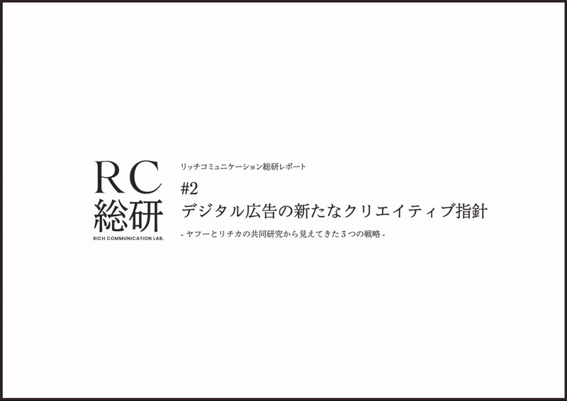 クリエイティブテックカンパニー、株式会社リチカ(本社:東京都渋谷区、代表取締役:松尾幸治 以下、当社)は、次世代のマーケティングトランスフォーメーションを分析・発信する研究機関「RC総研」の第二弾レポートを公開しました。第二弾ではヤフー株式会社(本社:東京都千代田区/代表取締役社長:川邊 健太郎 以下、ヤフー)と当社の共同研究をもとに「デジタル広告の新たなクリエイティブ指針」について解説しています。